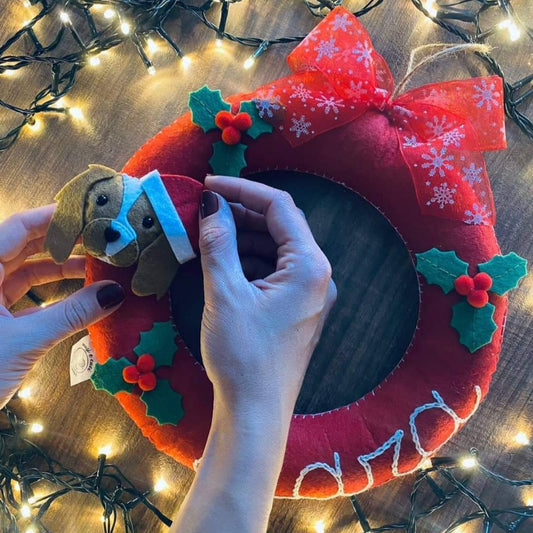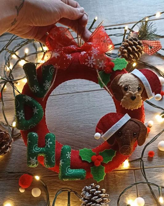 FUORIPORTA NATALIZIO CON INIZIALI E DECORAZIONI IN FELTRO
