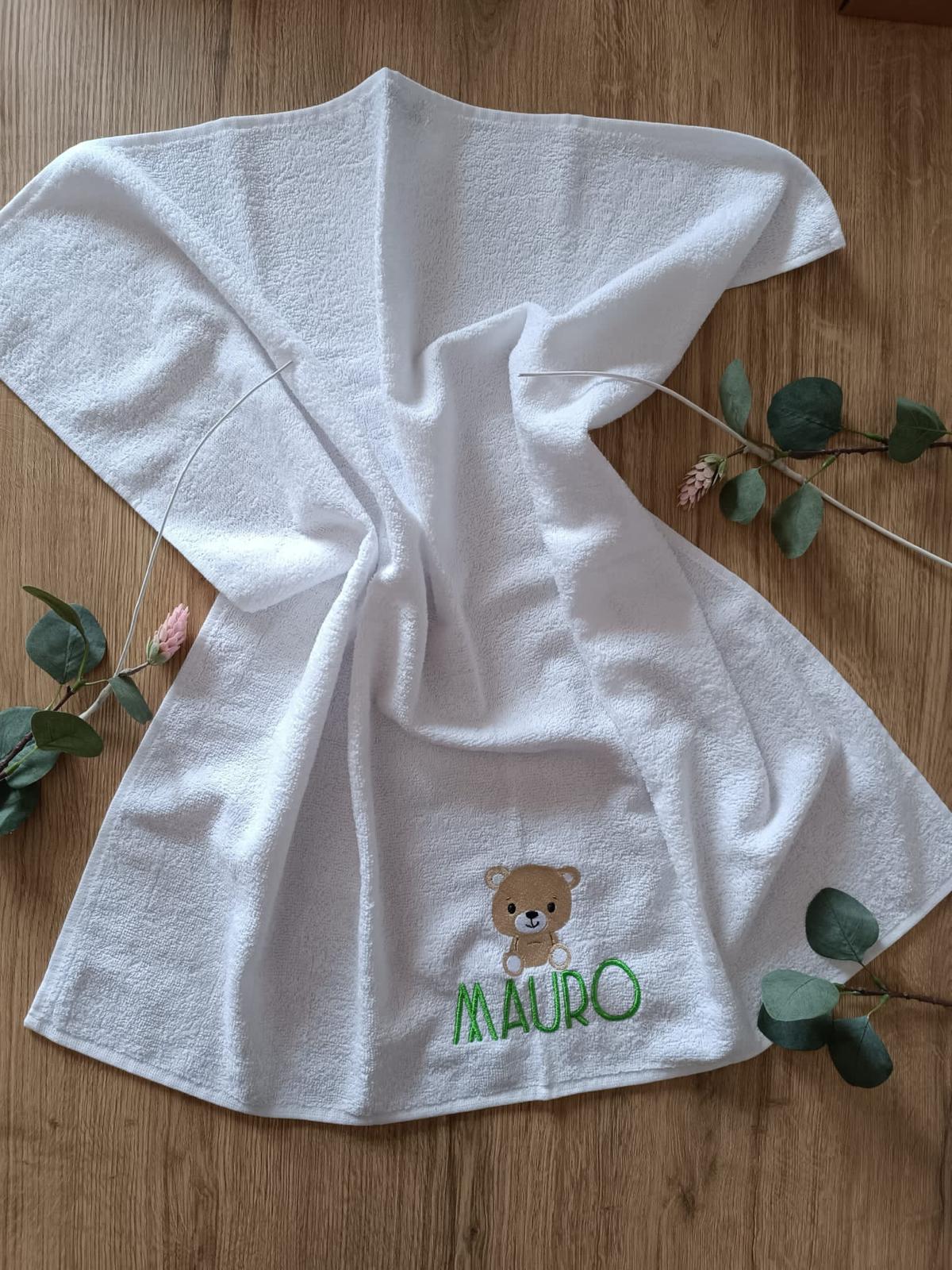 Con il nostro ASCIUGAMANO RICAMATO, il tuo bimbo avrà sempre un tenero compagno per il suo rientro a scuola o per il bagnetto.