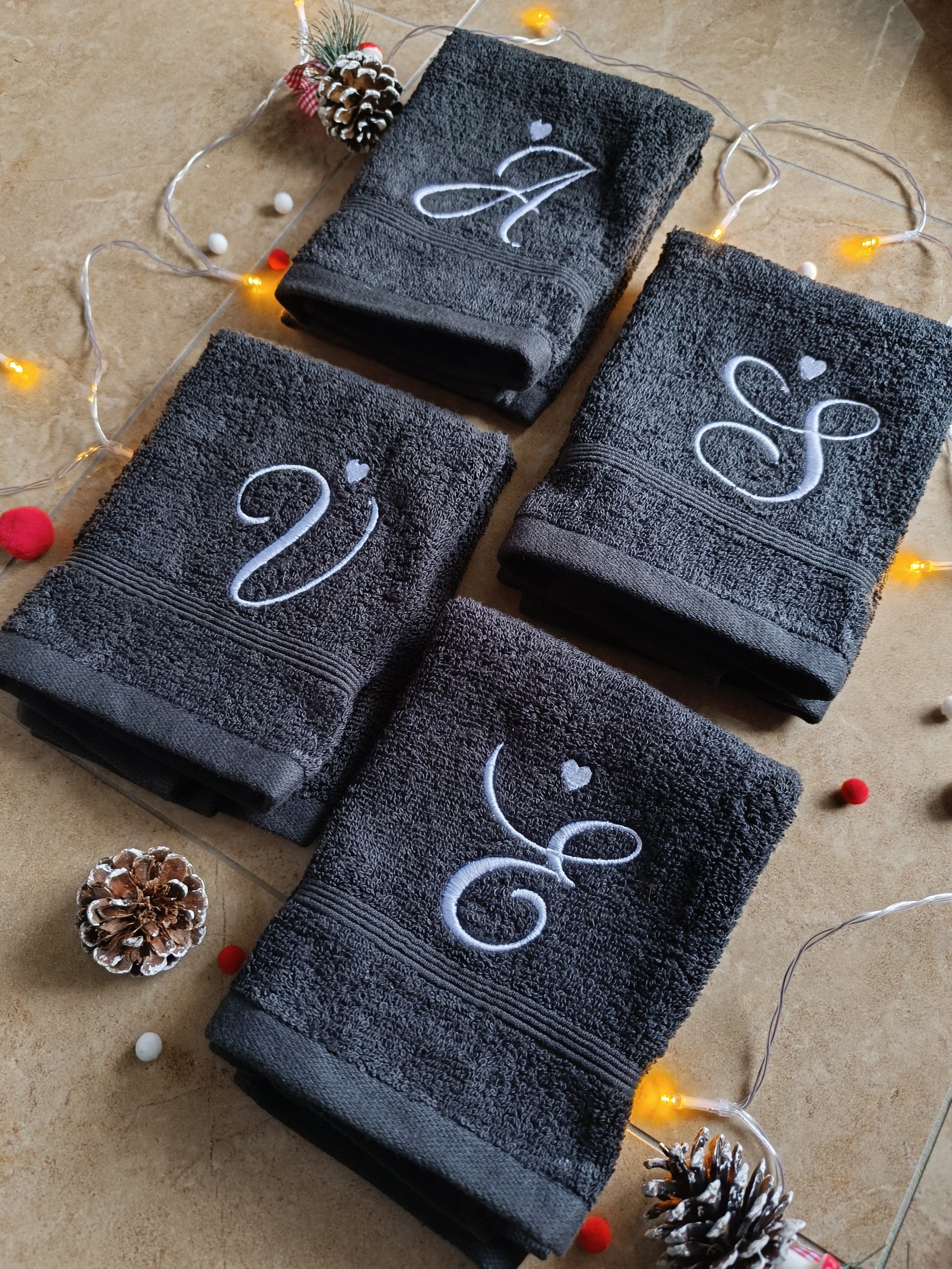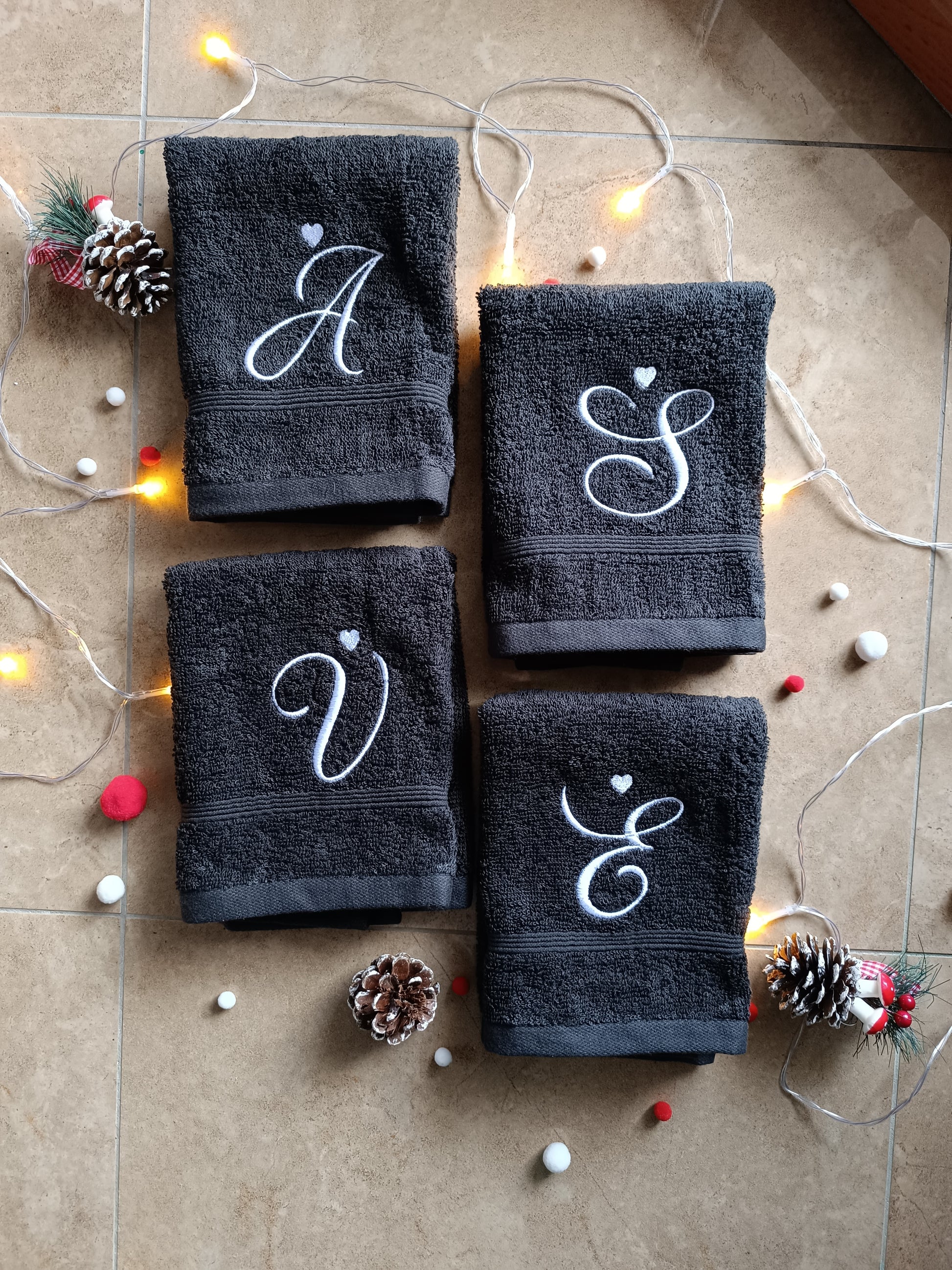 Morbidissimi asciugamani personalizzati con il ricamo delle loro iniziali e di un piccolo cuoricino.