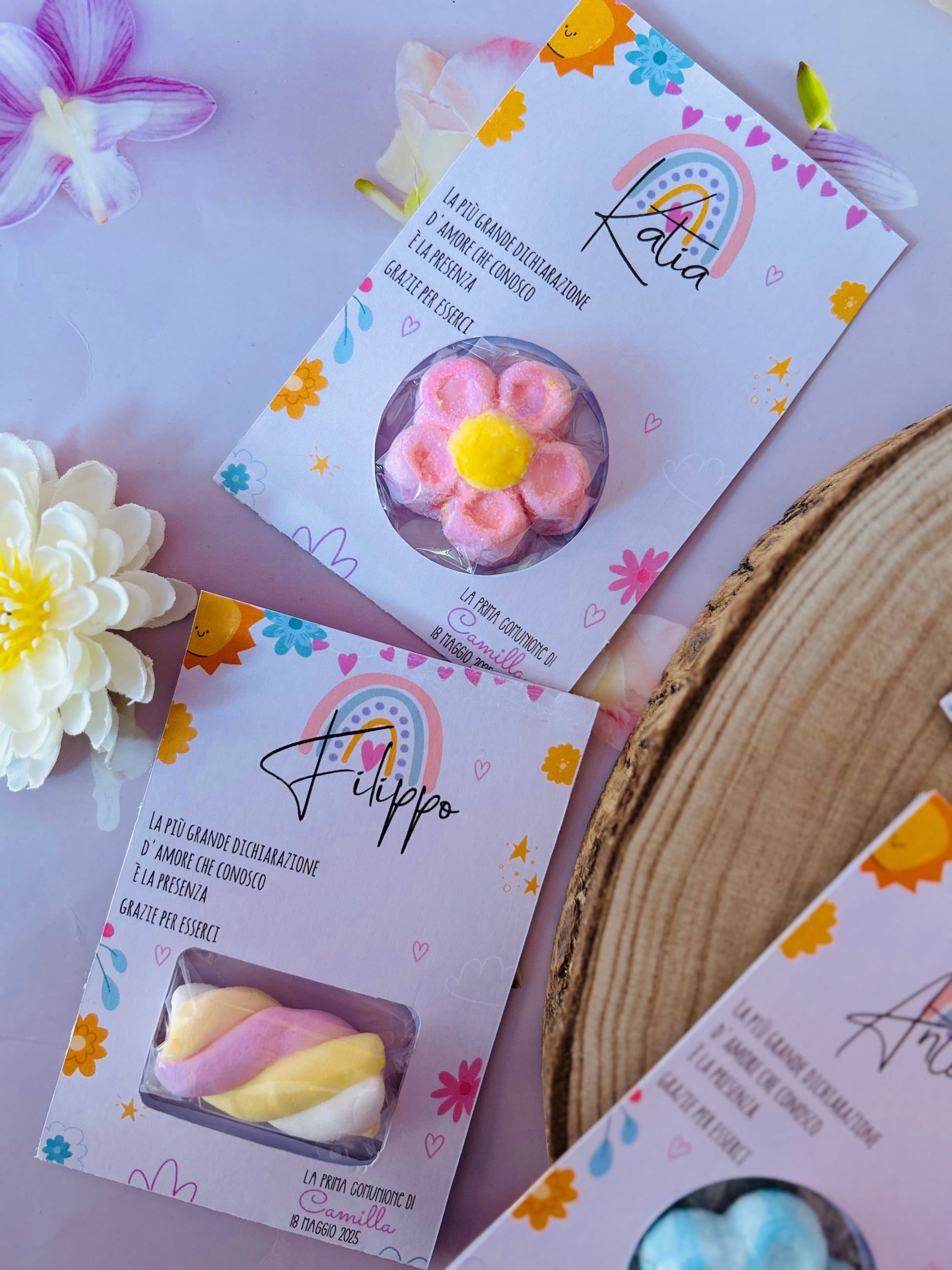 Scegli i nostri cartoncini marshmallow personalizzabili come segnaposto, ricordini, bomboniere o per abbellire il tuo party kit.