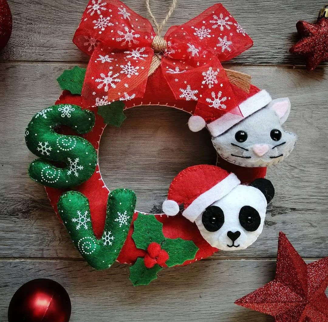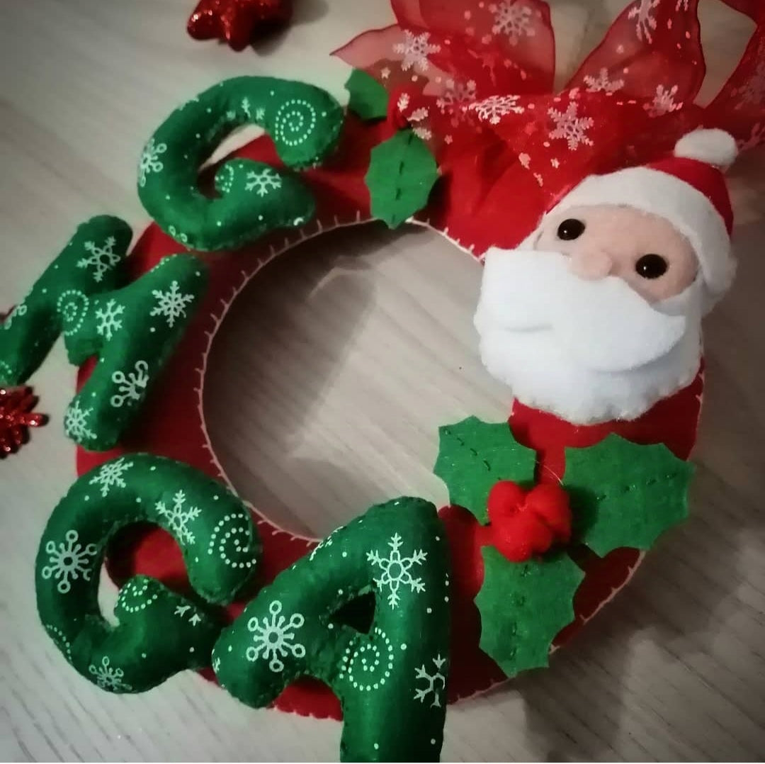 Nel costo è compreso: la base, due iniziali in feltro, una decorazione in feltro a vostra scelta con cappellino di Natale, il fiocchetto natalizio, l'agrifoglio decorativo (il numero varia in base allo spazio disponibile).