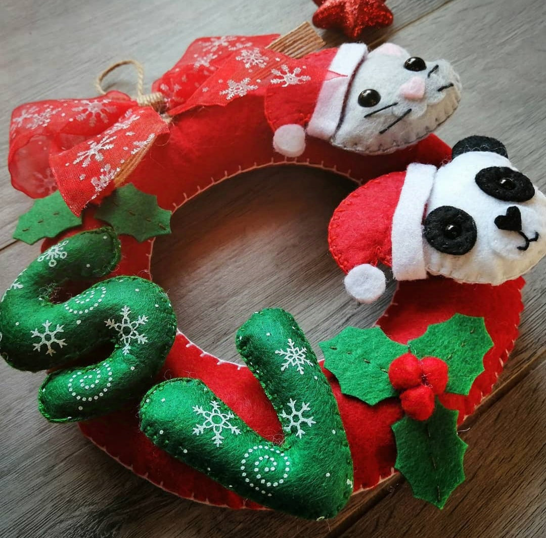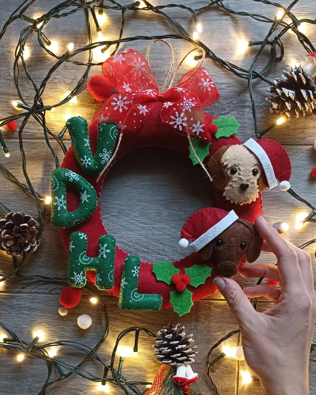 Aggiungi un tocco di calore e personalità alla tua casa con questo fuoriporta natalizio con iniziali e decorazioni in feltro.