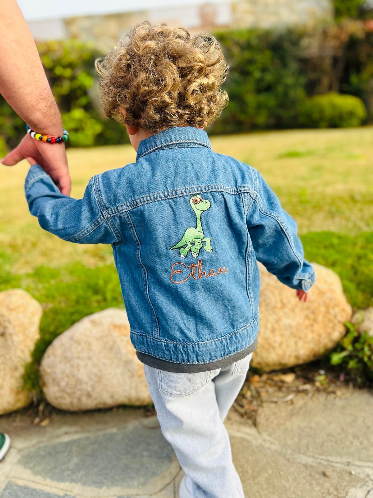 Aggiungi un tocco di allegria al guardaroba del tuo bambino con la GIACCA IN JEANS RICAMATA con il suo nome e il suo personaggio o animaletto preferito e colora la sua primavera!