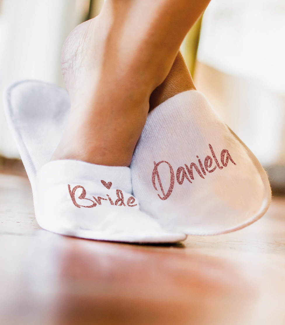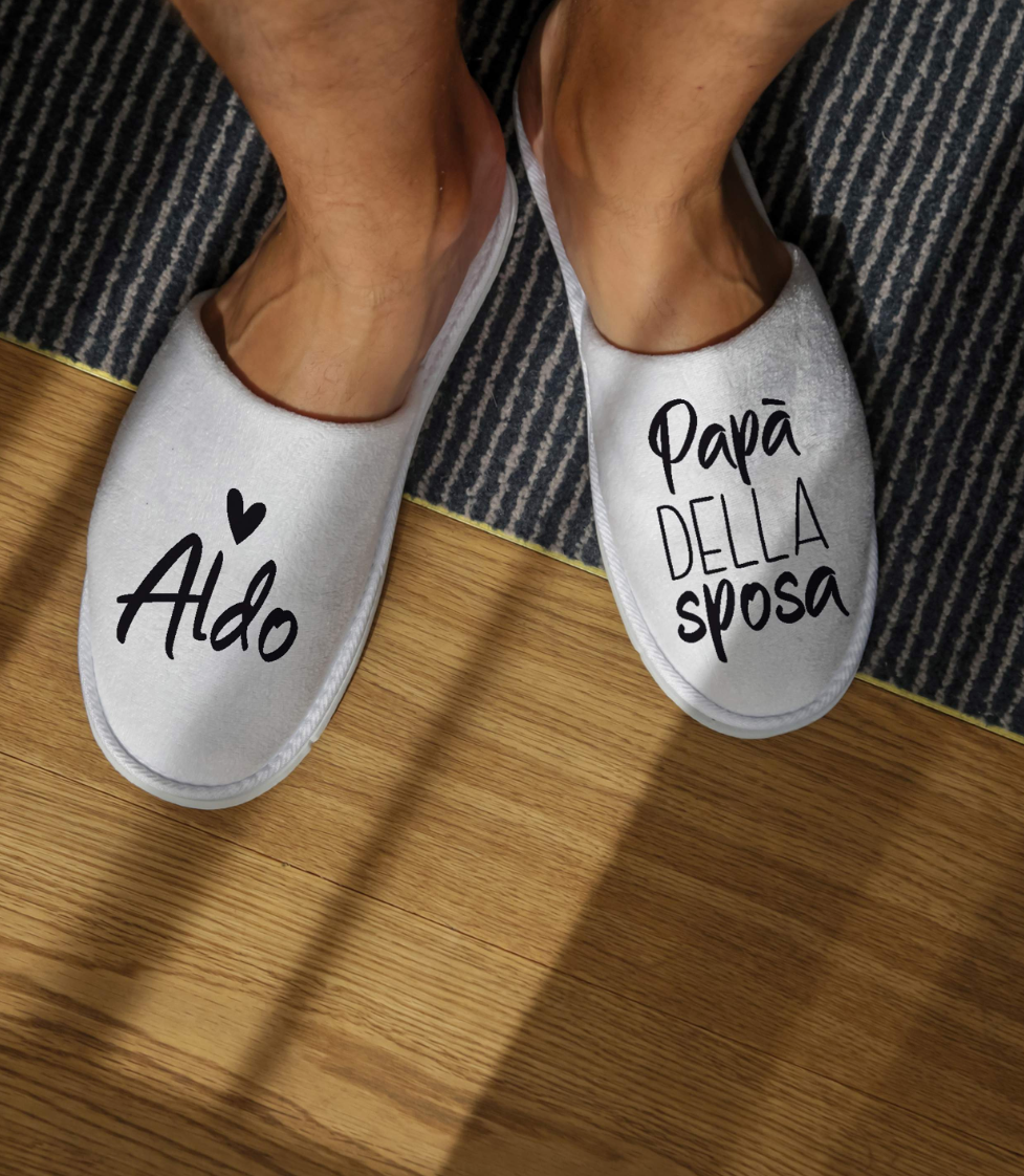 Per personalizzare il vostro giorno speciale o per l’addio al nubilato della vostra amica o in una Spa o per un pigiama party scegli le PANTOFOLE WEDDING!!
