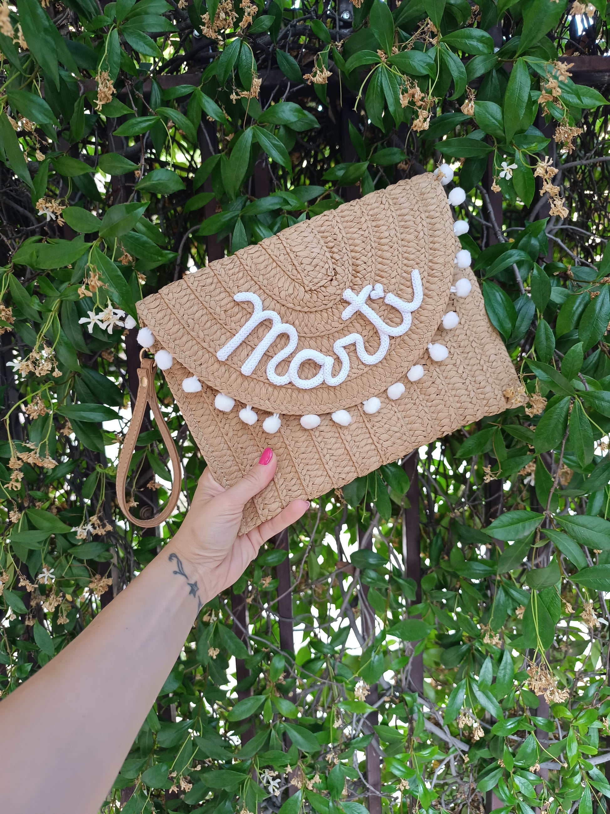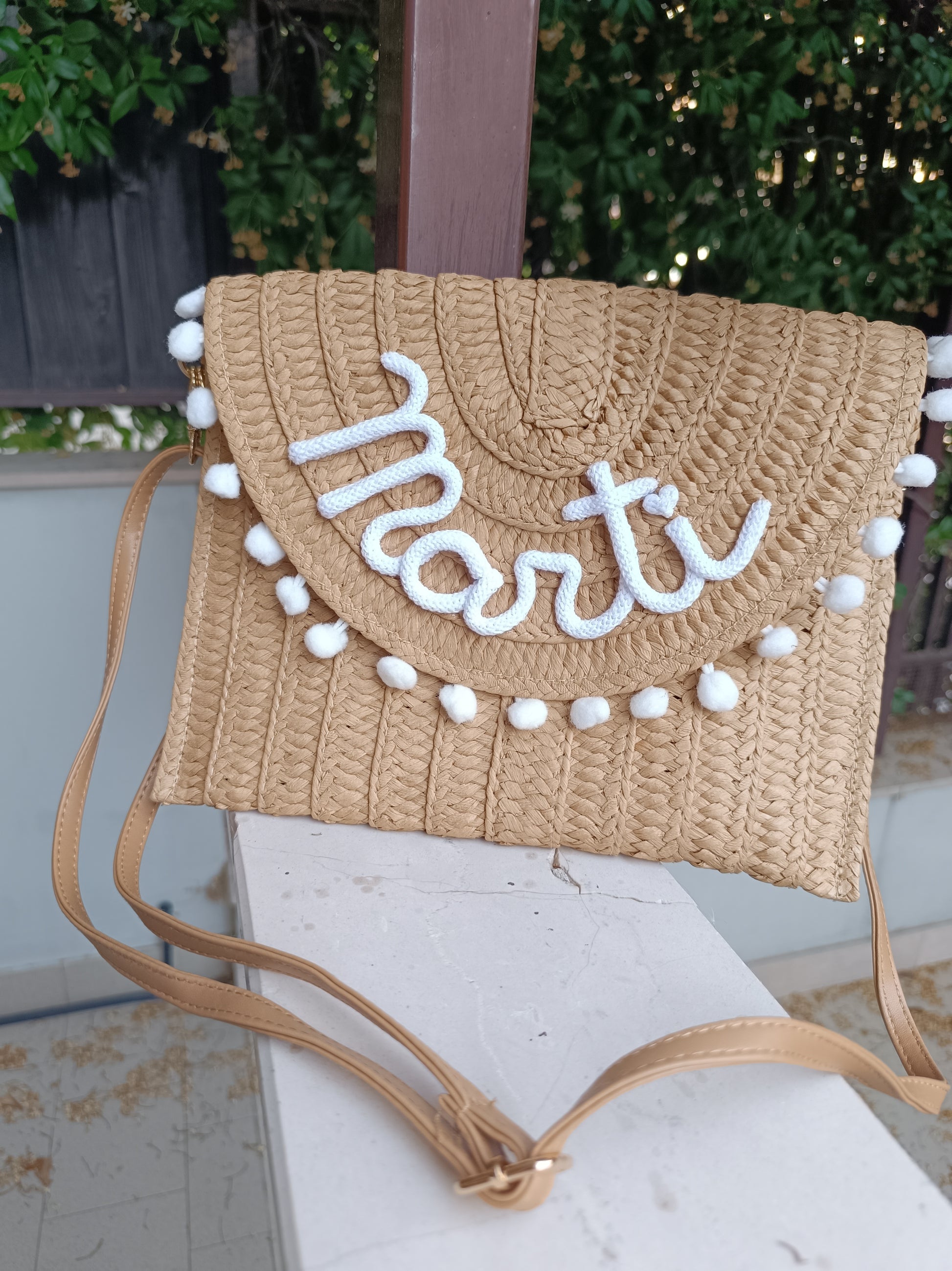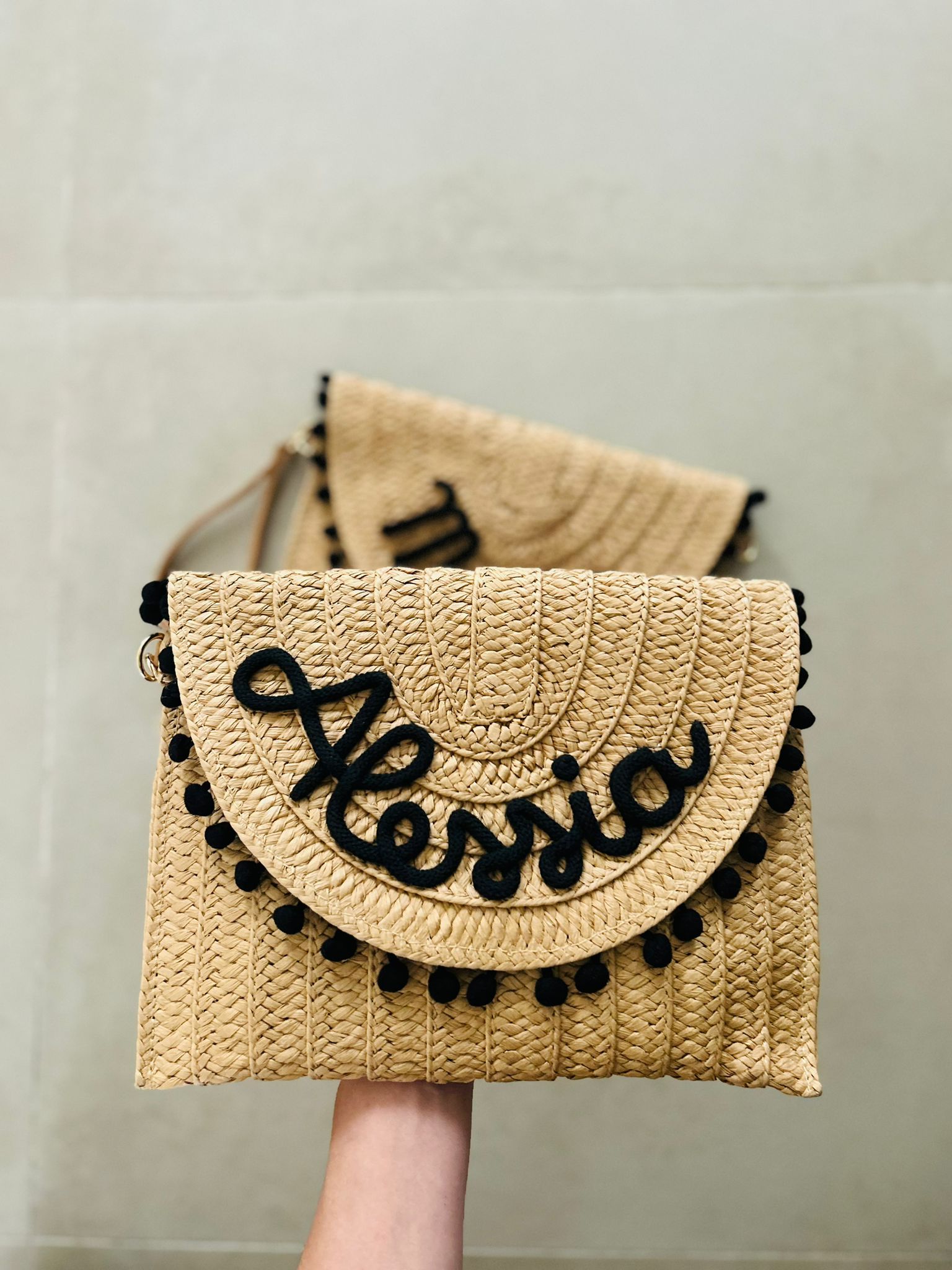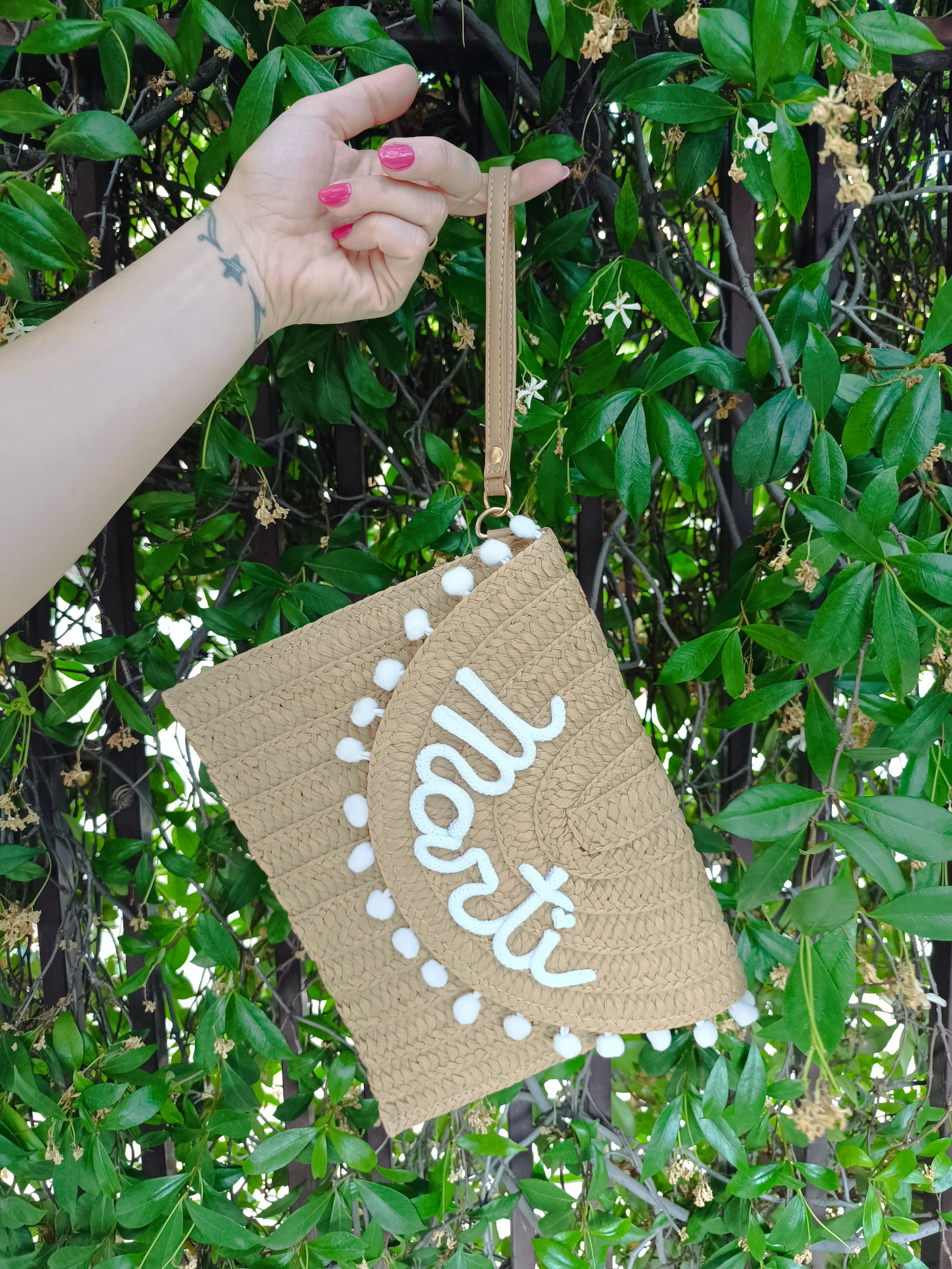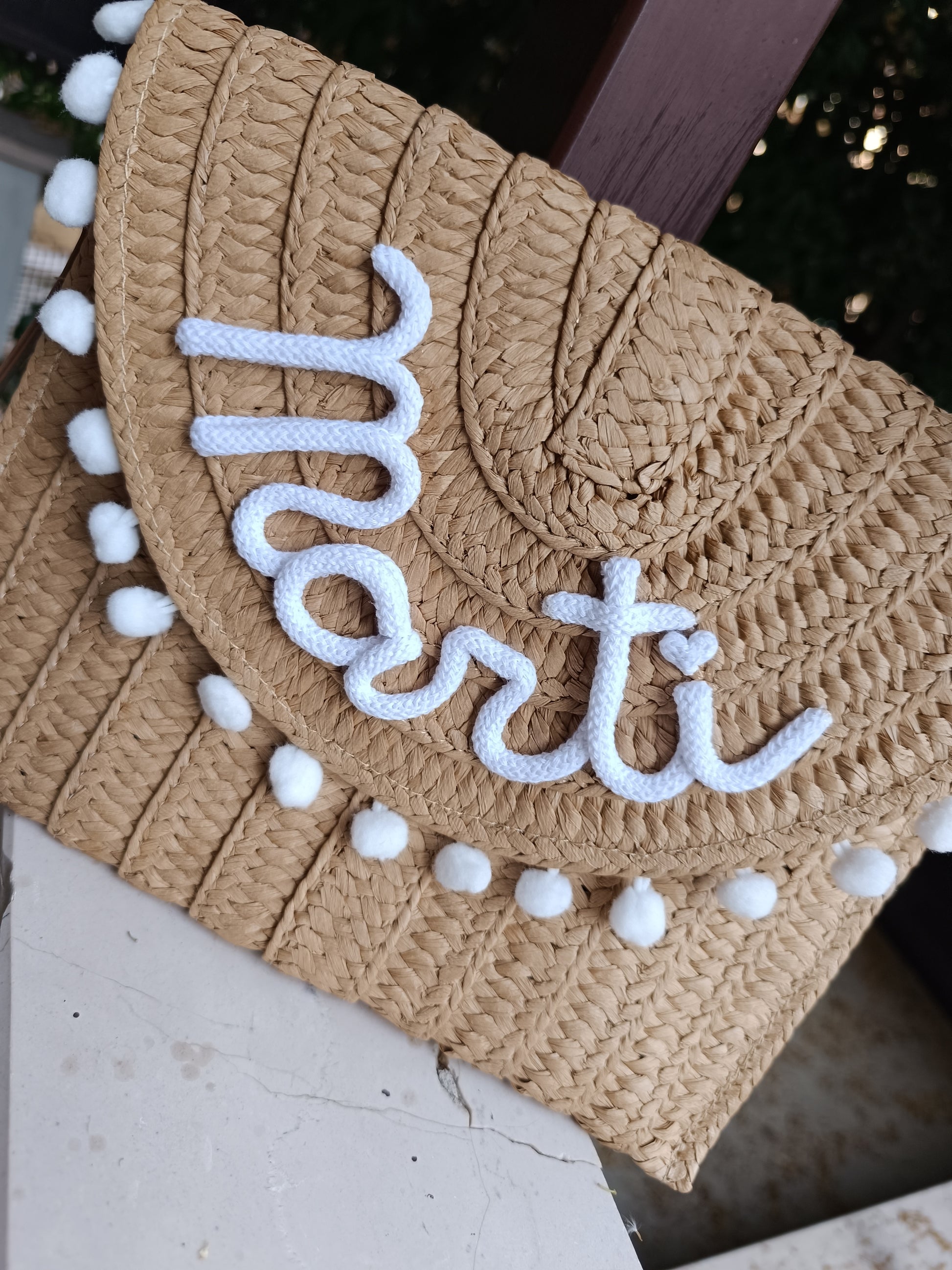 POCHETTE IN PAGLIA CON NOME E PON PON