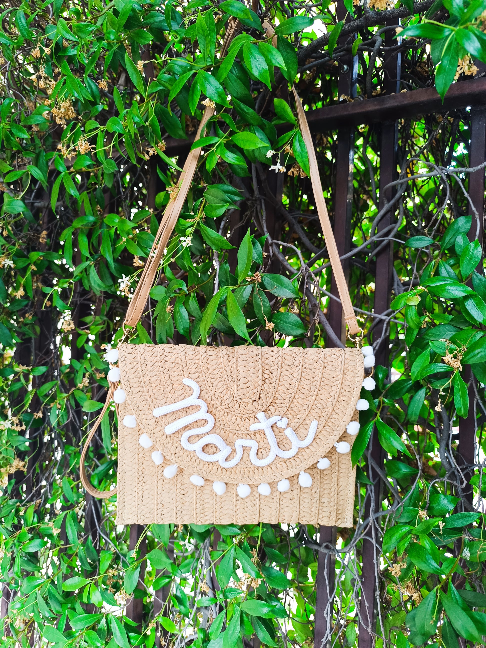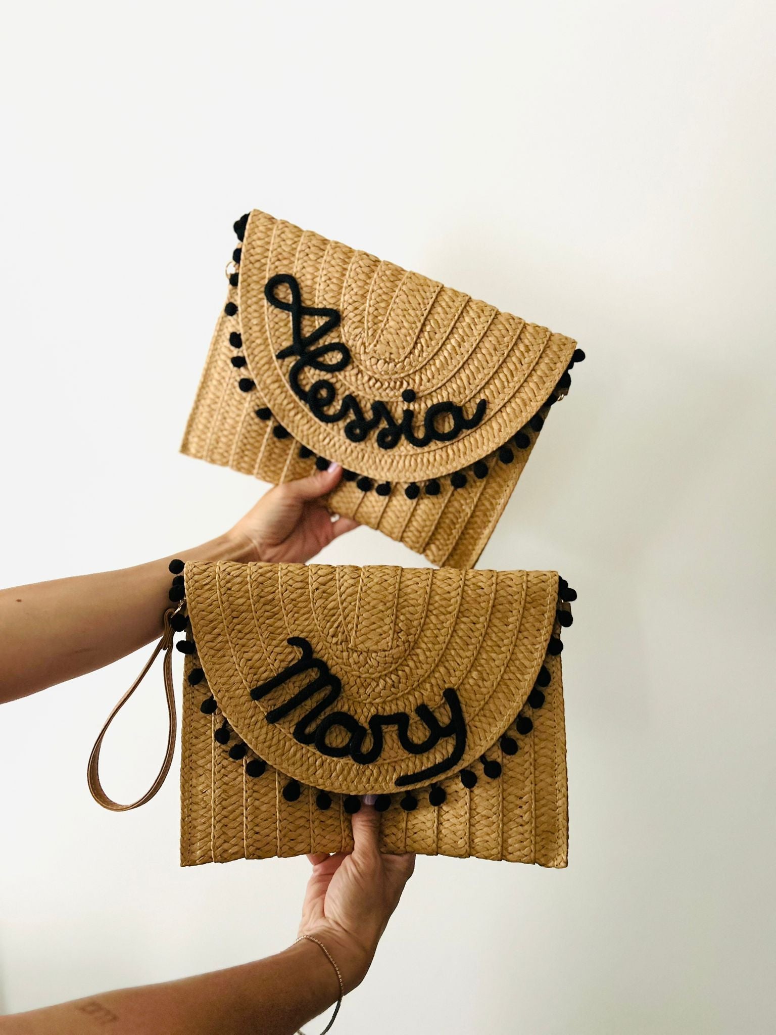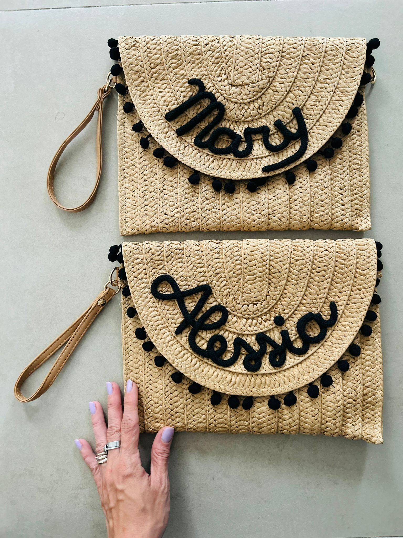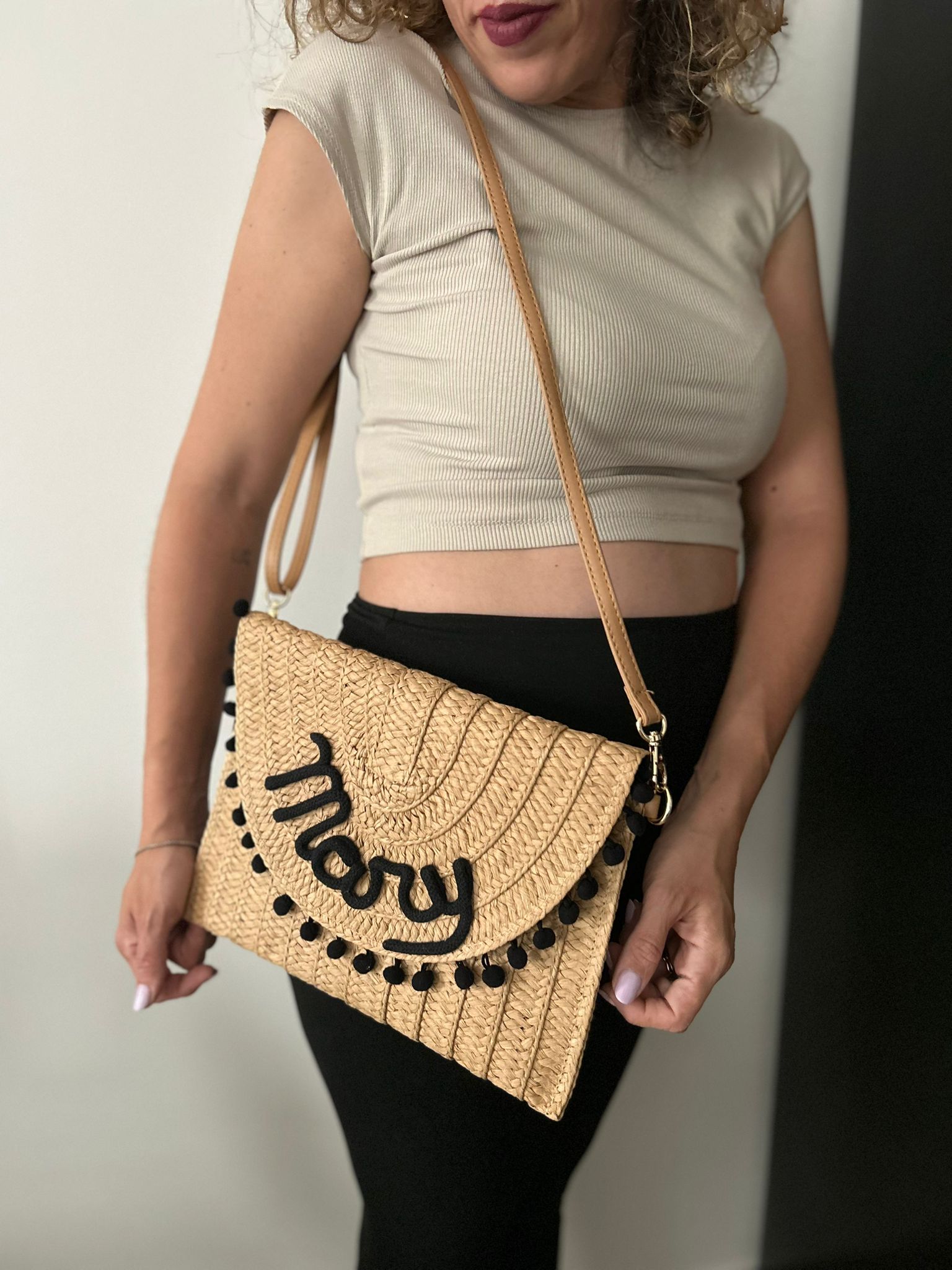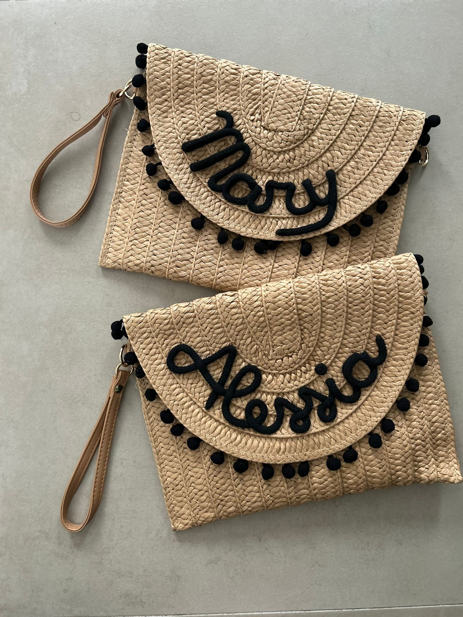 POCHETTE IN PAGLIA CON NOME E PON PON