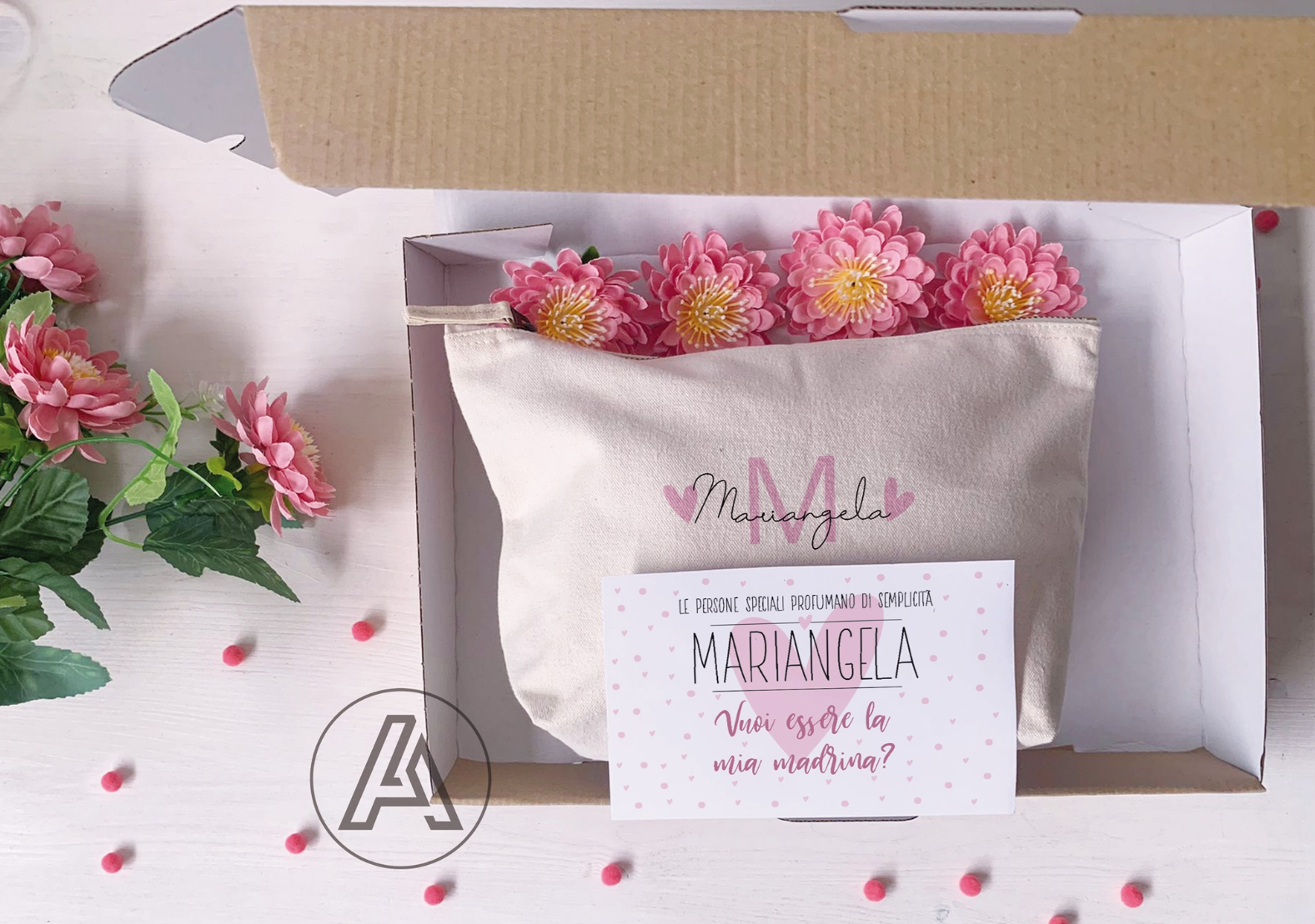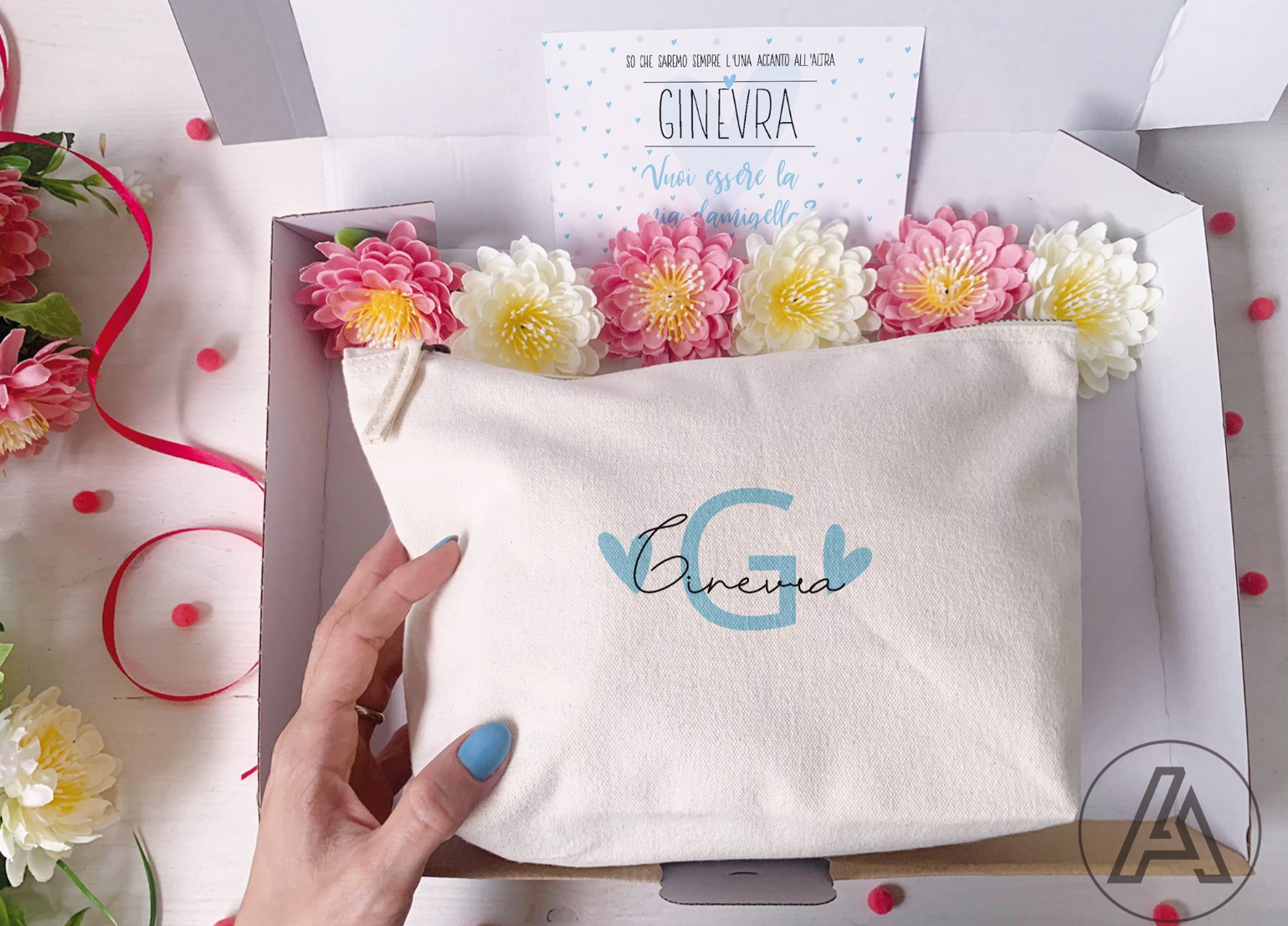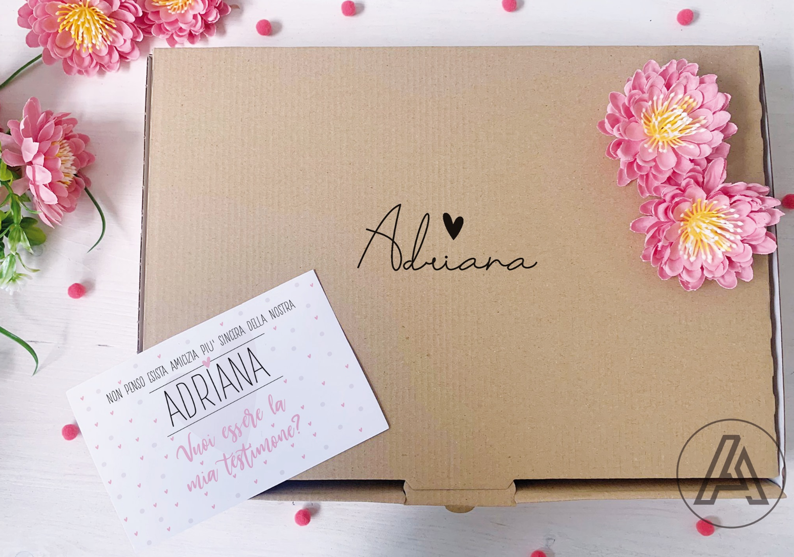 alla pochette potrete scegliere di abbinare una scatola personalizzata con lo stesso nome e una cartolina SUPER CUTE!!