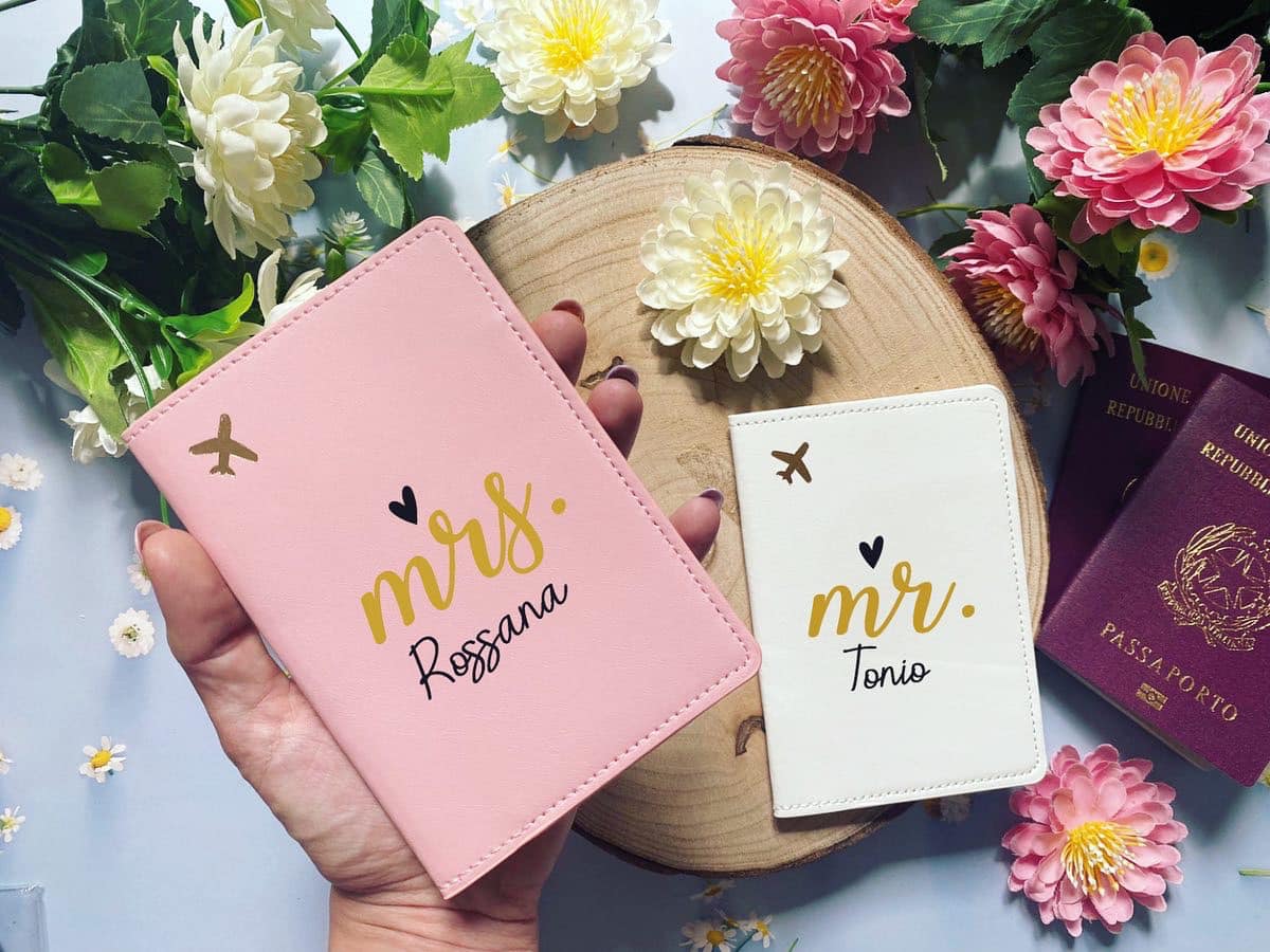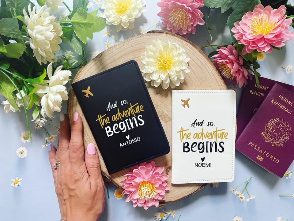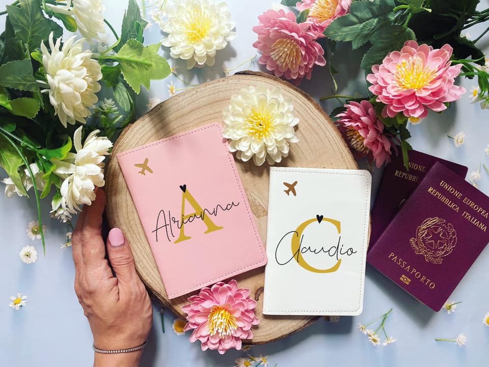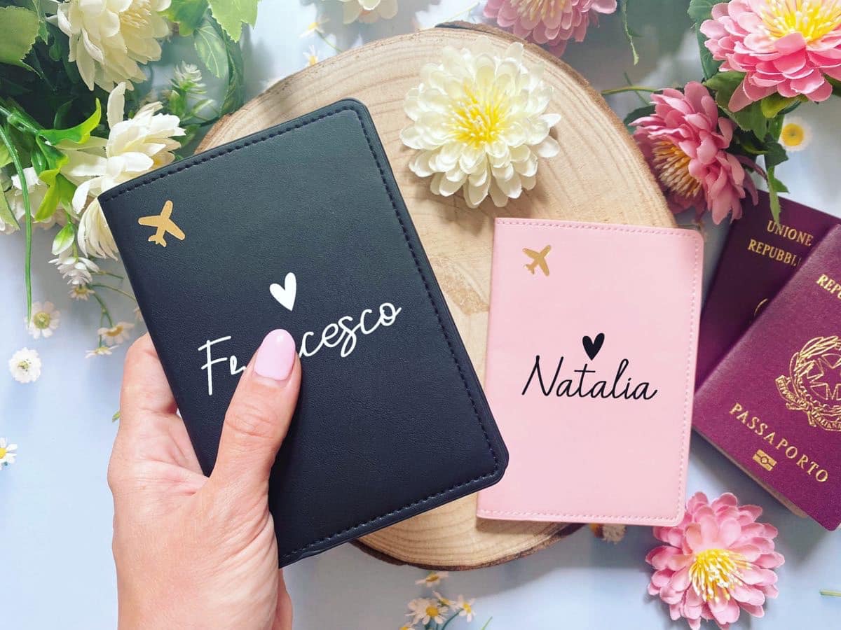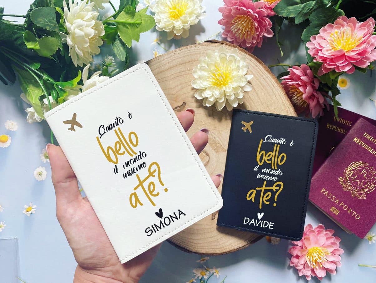 E' possibile personalizzare i porta passaporto con una frase(breve), il proprio nome o entrambi