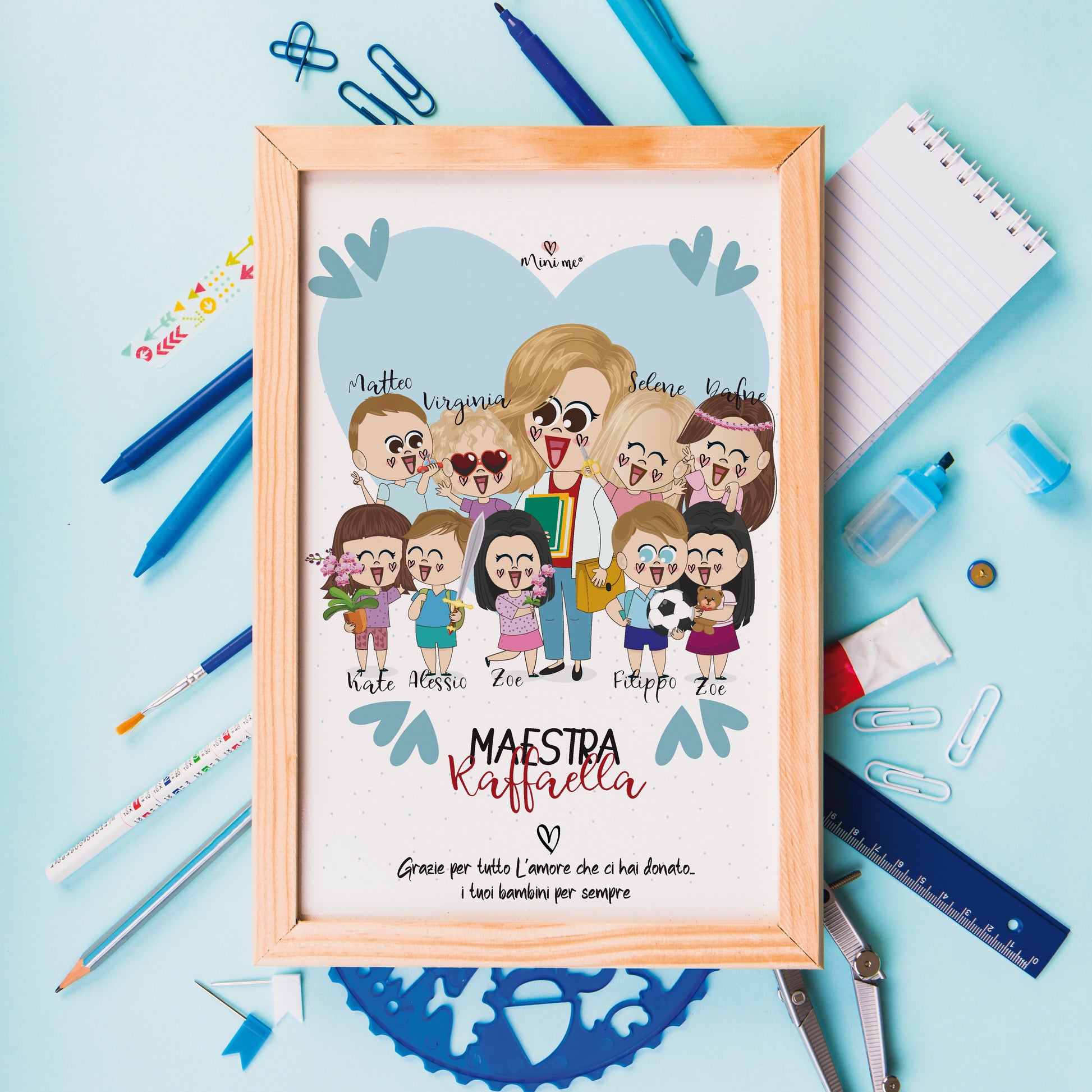 Regala una sorpresa speciale alla tua maestra con il nostro Quadretto Mini me! Con caricature divertenti dei bambini e delle maestre\i, è il regalo perfetto per il fine anno scolastico.