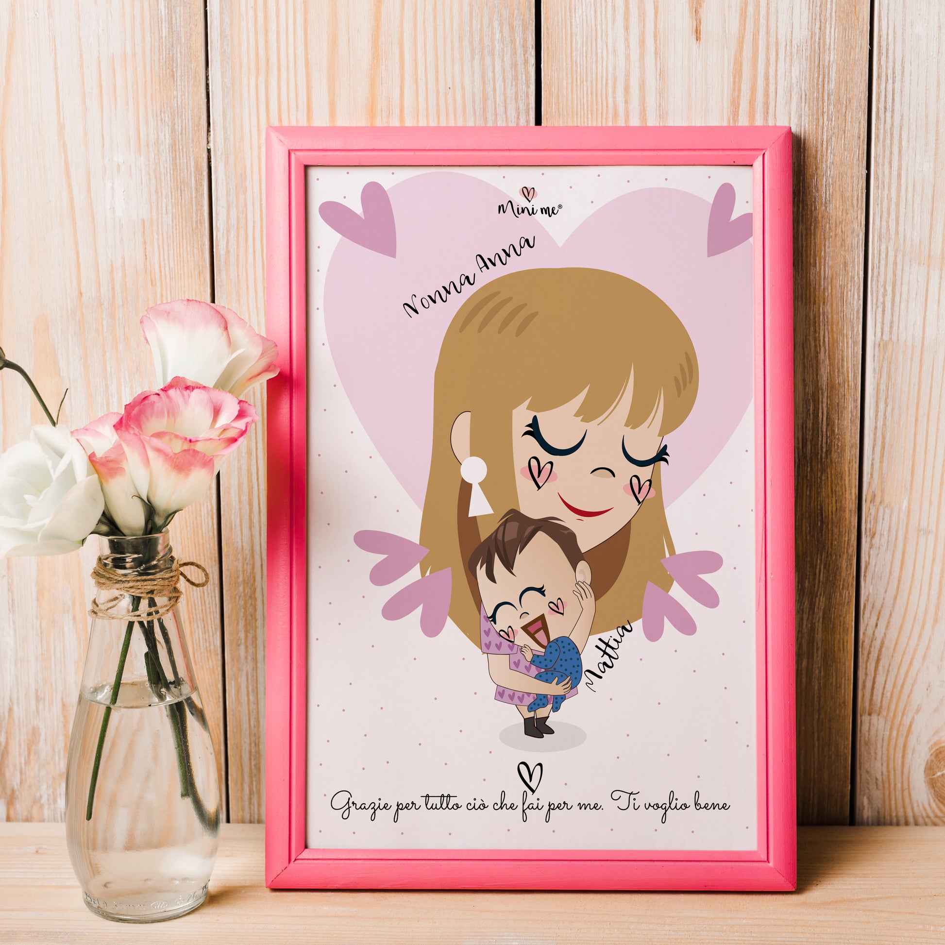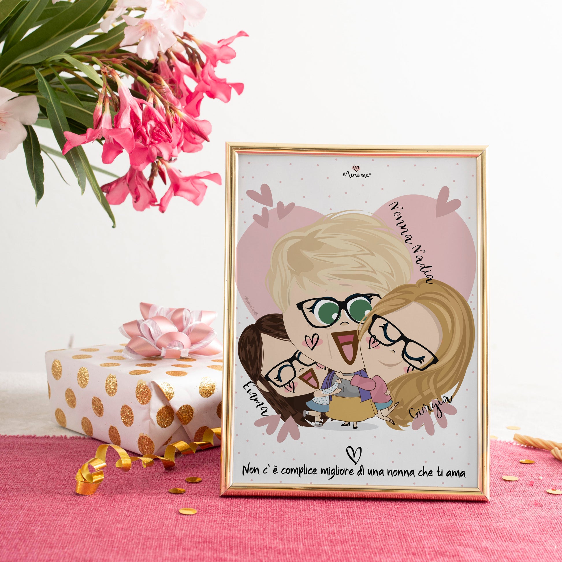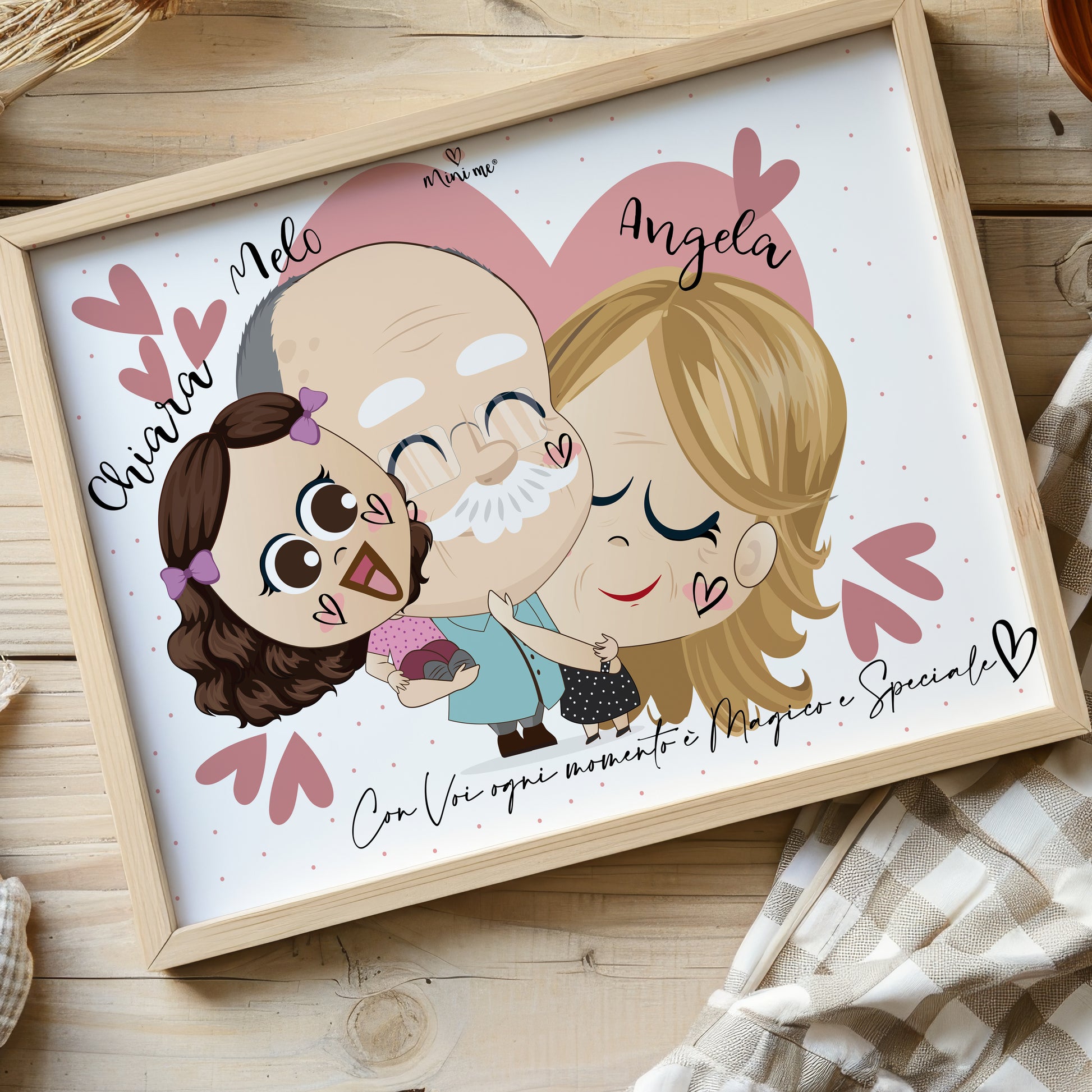 Simpatico ritratto Mini me personalizzato in stile cartoon di voi e i vostri amati nonni.