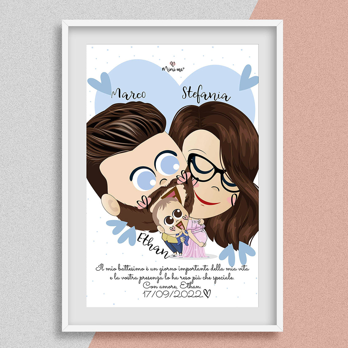 Stupisci con questo ritratto mini me le persone che accompagnano il tuo bimbo o la tua bimba in un giorno speciale come quello del battesimo (o della cresima)