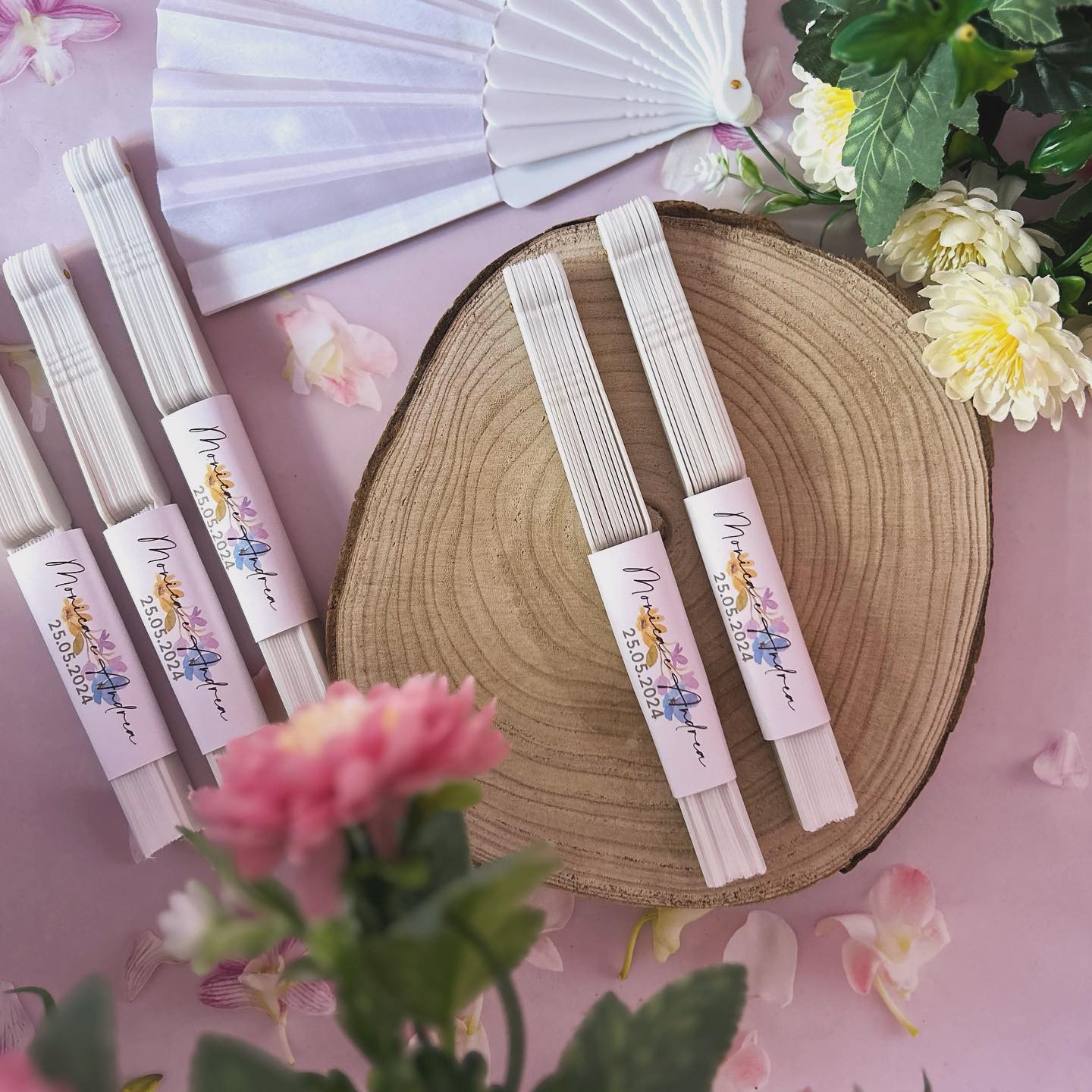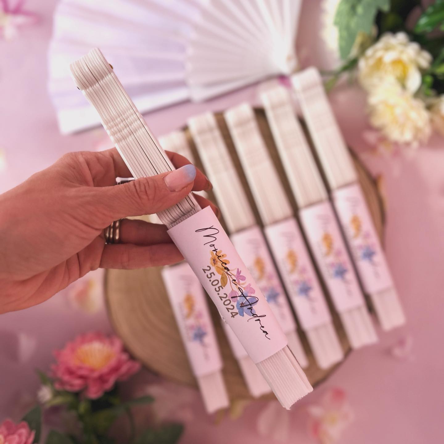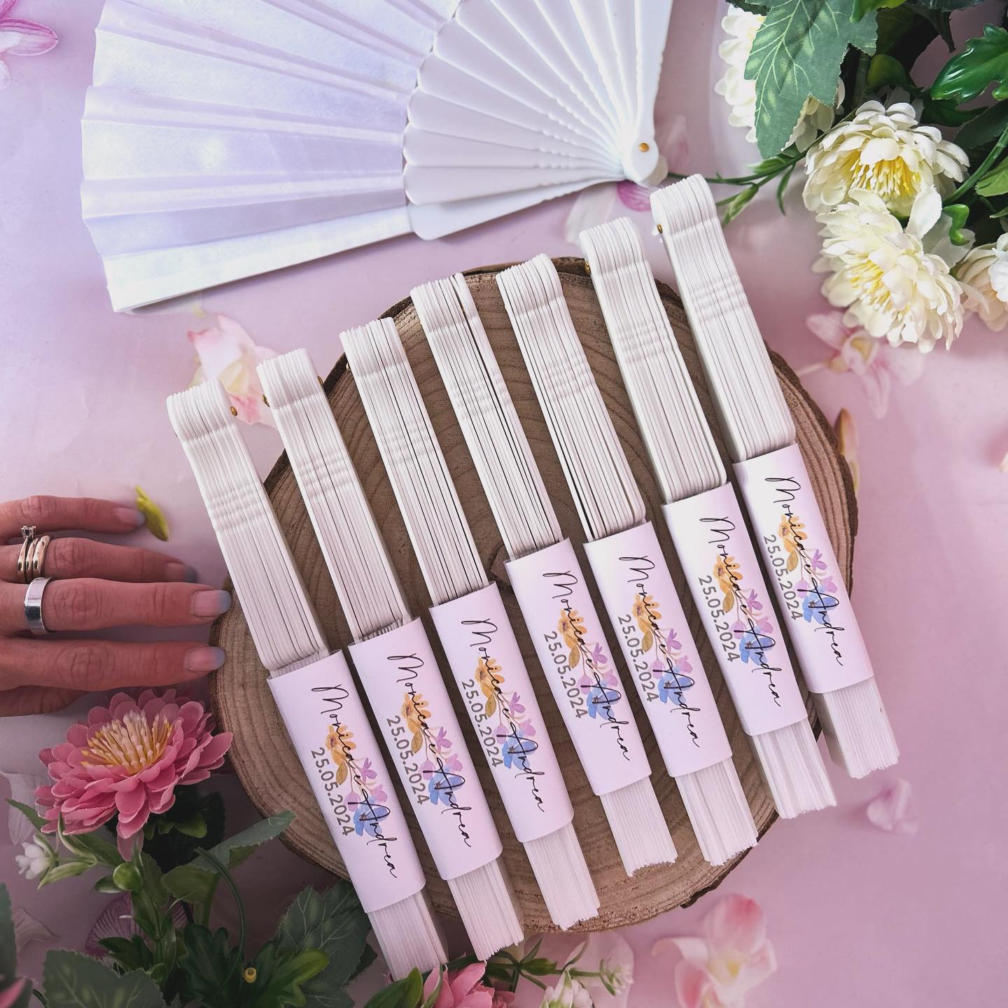 Aggiungi un tocco di freschezza al tuo matrimonio con questo set di 15 ventagli personalizzati.