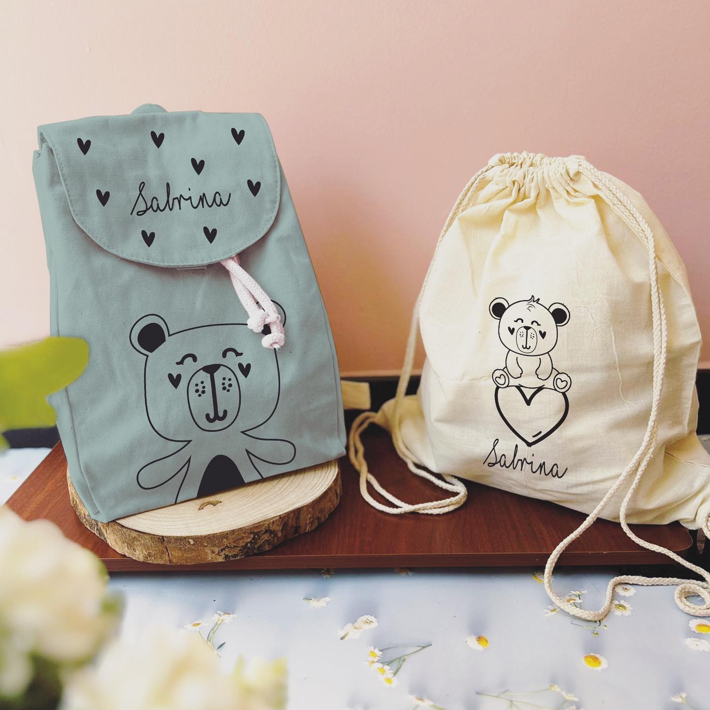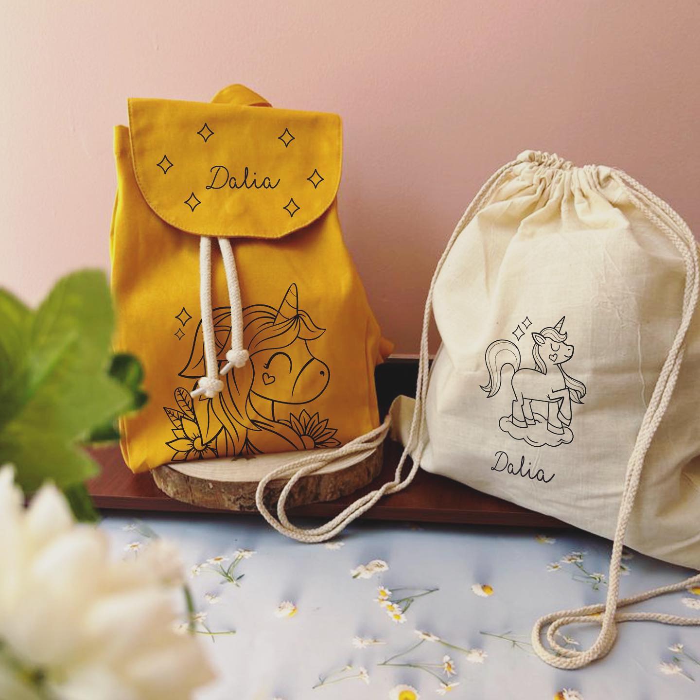 Colori disponibili per gli zainetti: rosa, blu navy, verde, panna, giallo senape