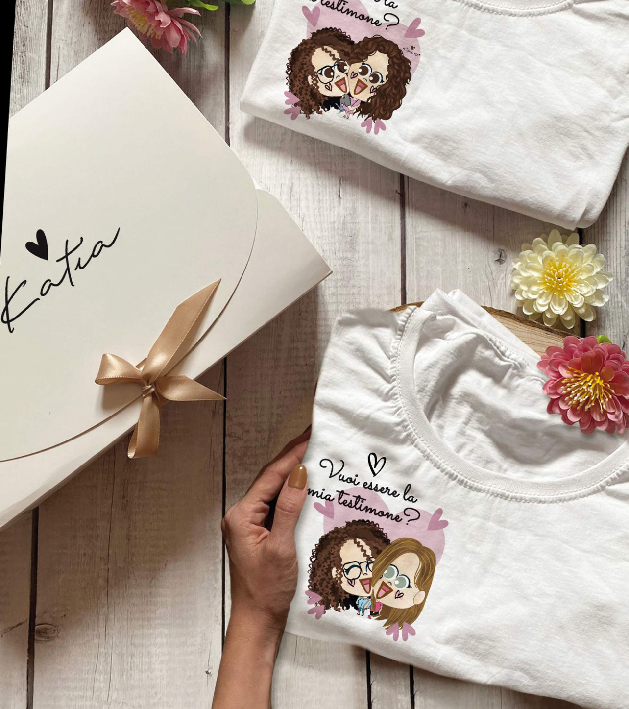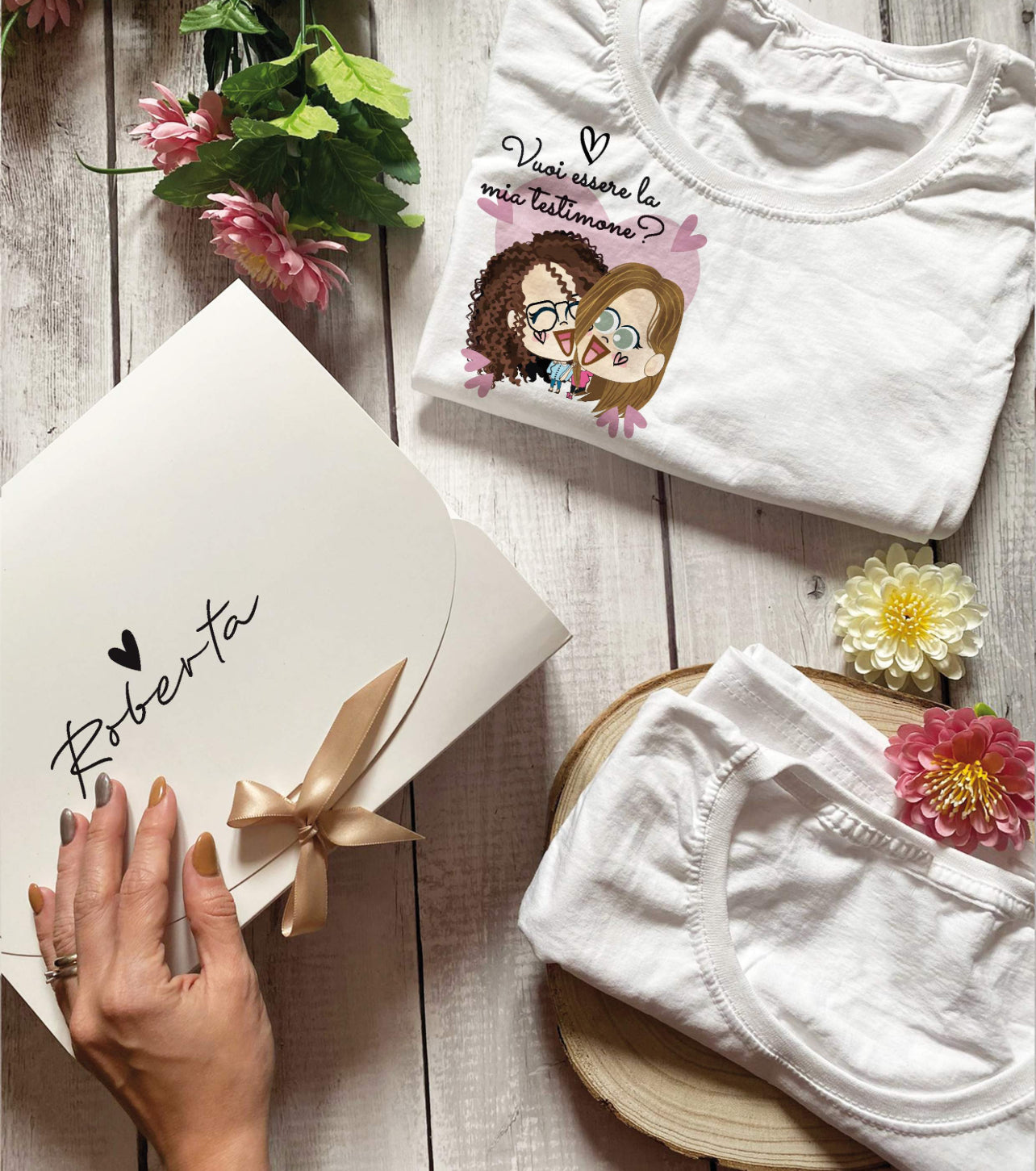 Simpatica T-shirt personalizzata con la tua Mini me e della persona a cui vorrai chiedere di esserti testimone nel tuo giorno importante