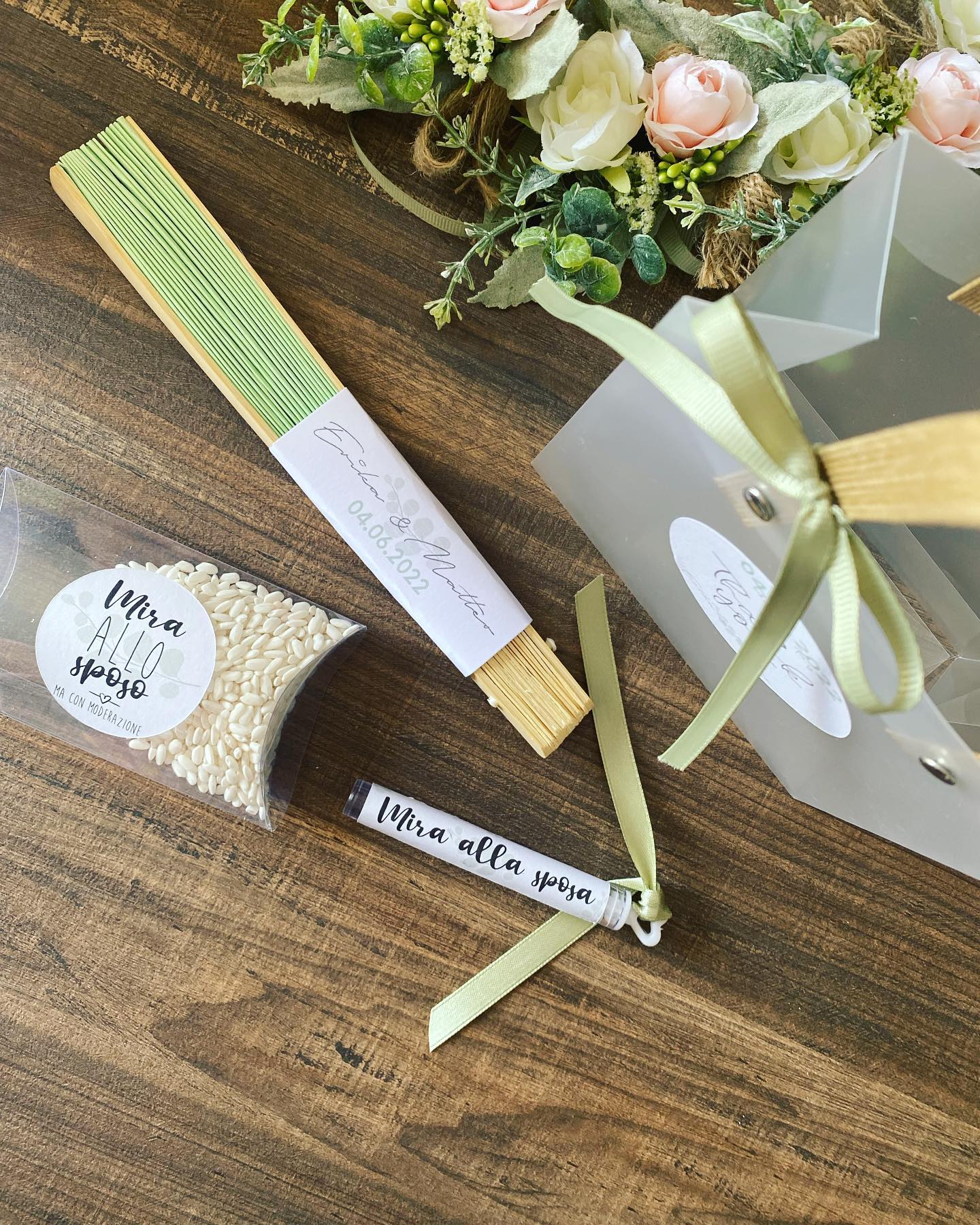 Sulla parte frontale verrà applicato a scelta un adesivo con grafica personalizzata per te o un tag esterno tondo in cartoncino