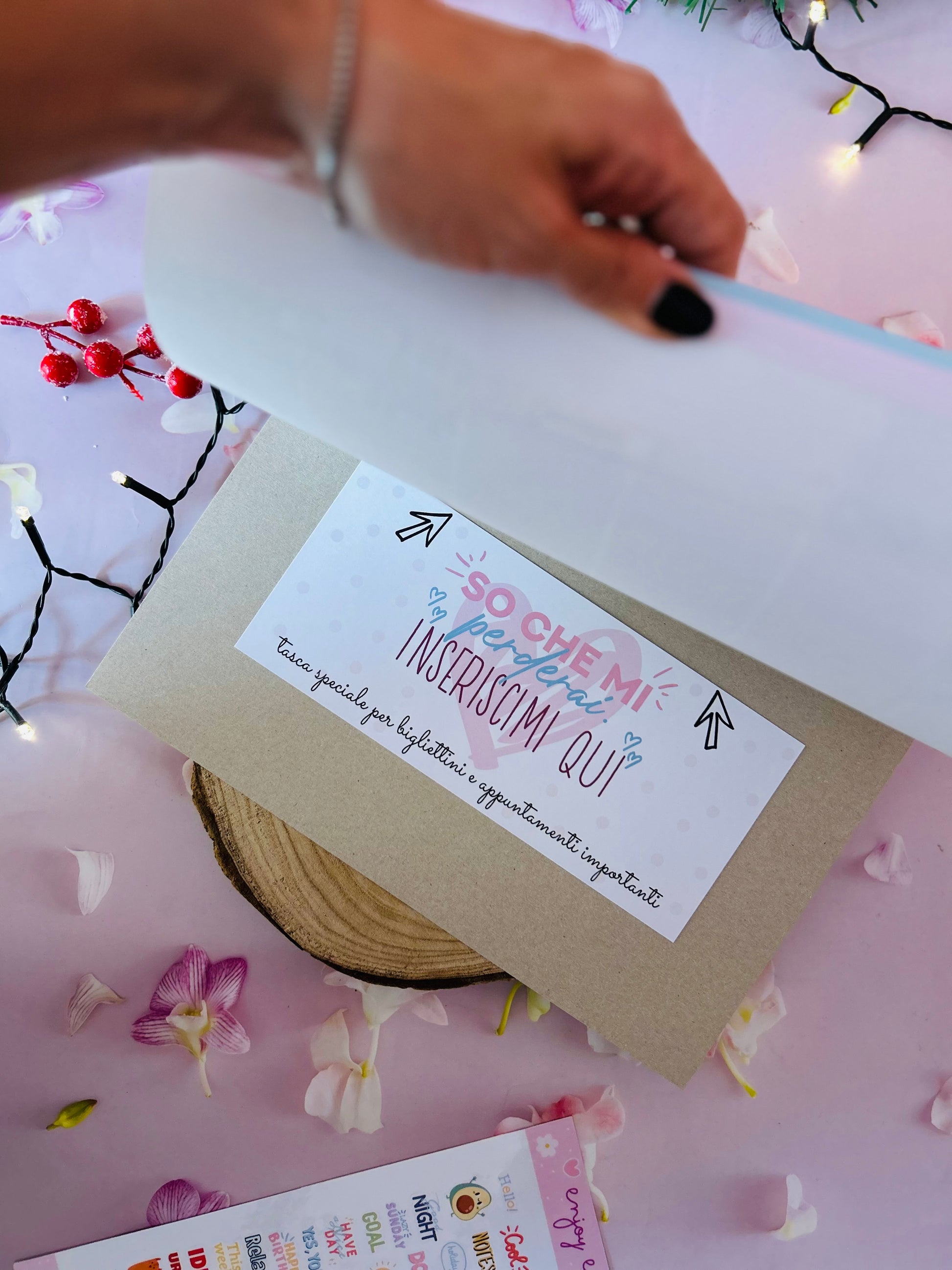 •tasca sul retro per conservare i vostri bigliettini/appuntamenti importanti