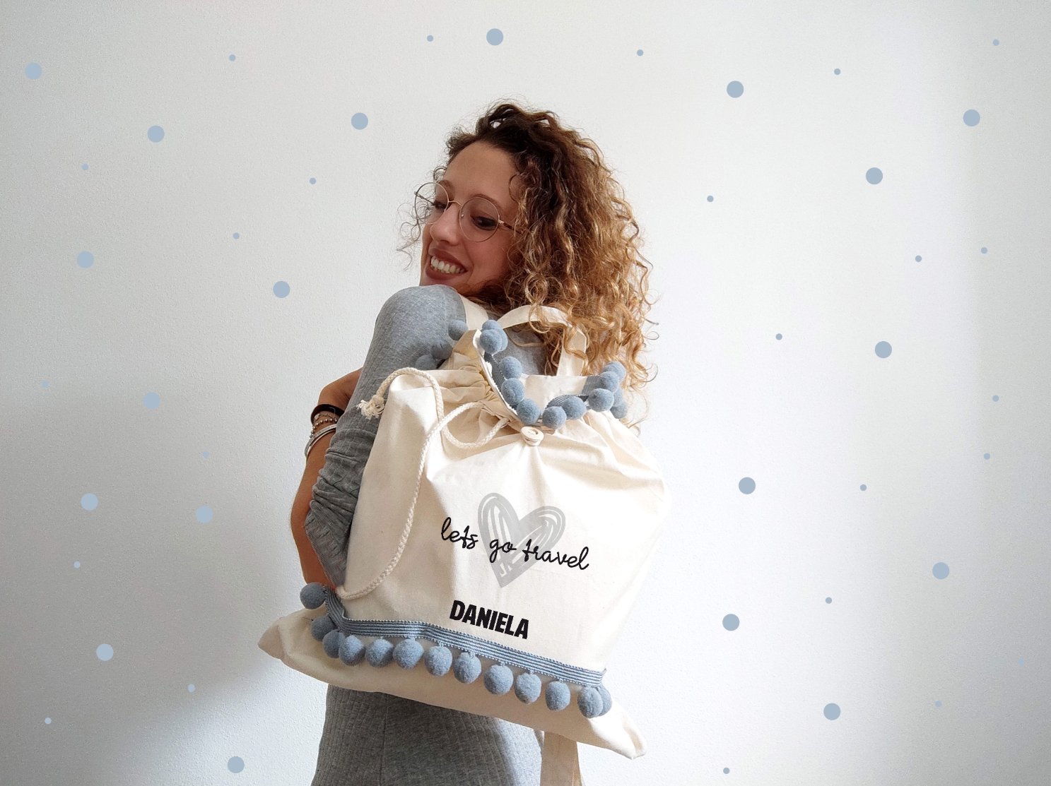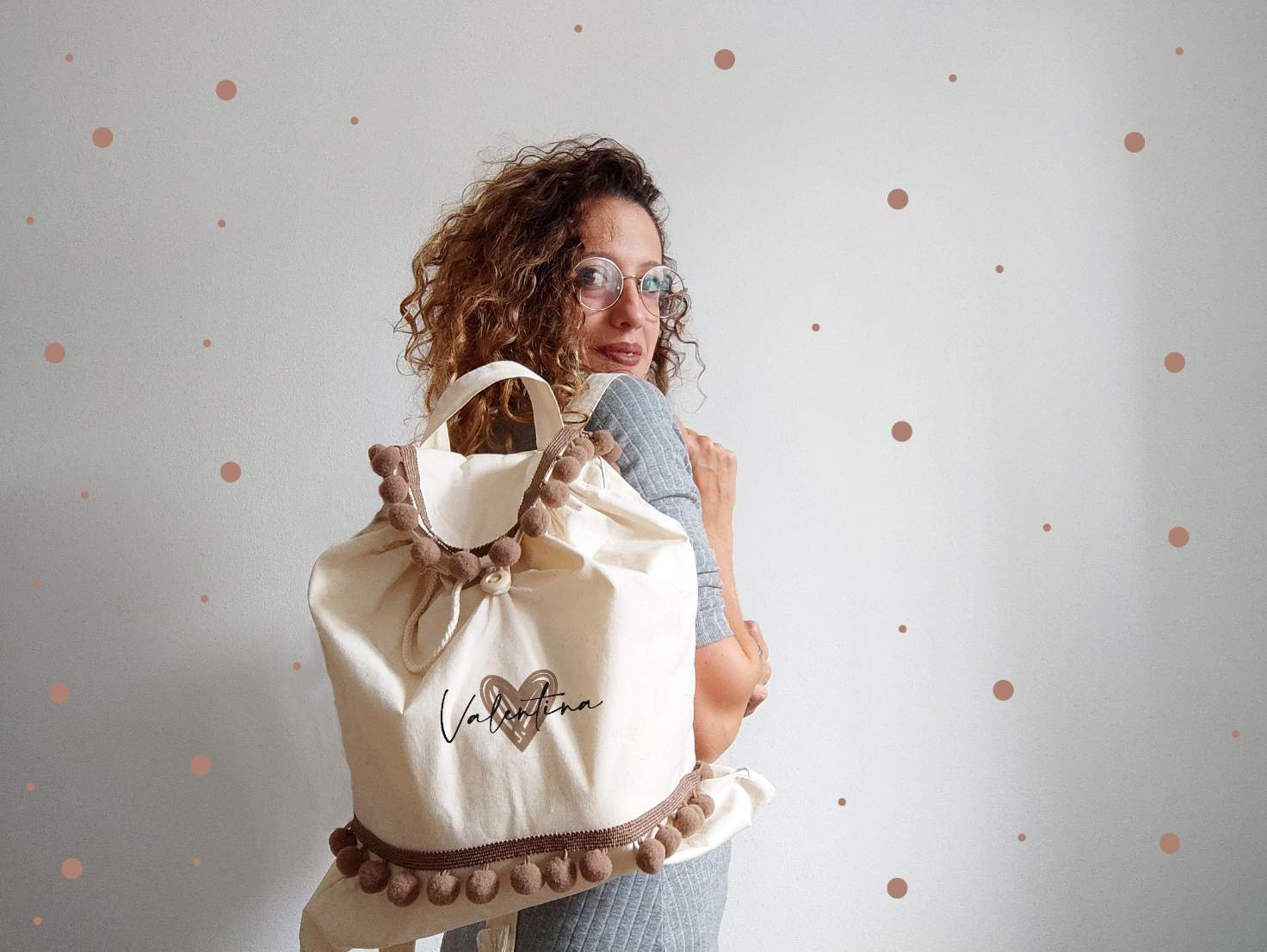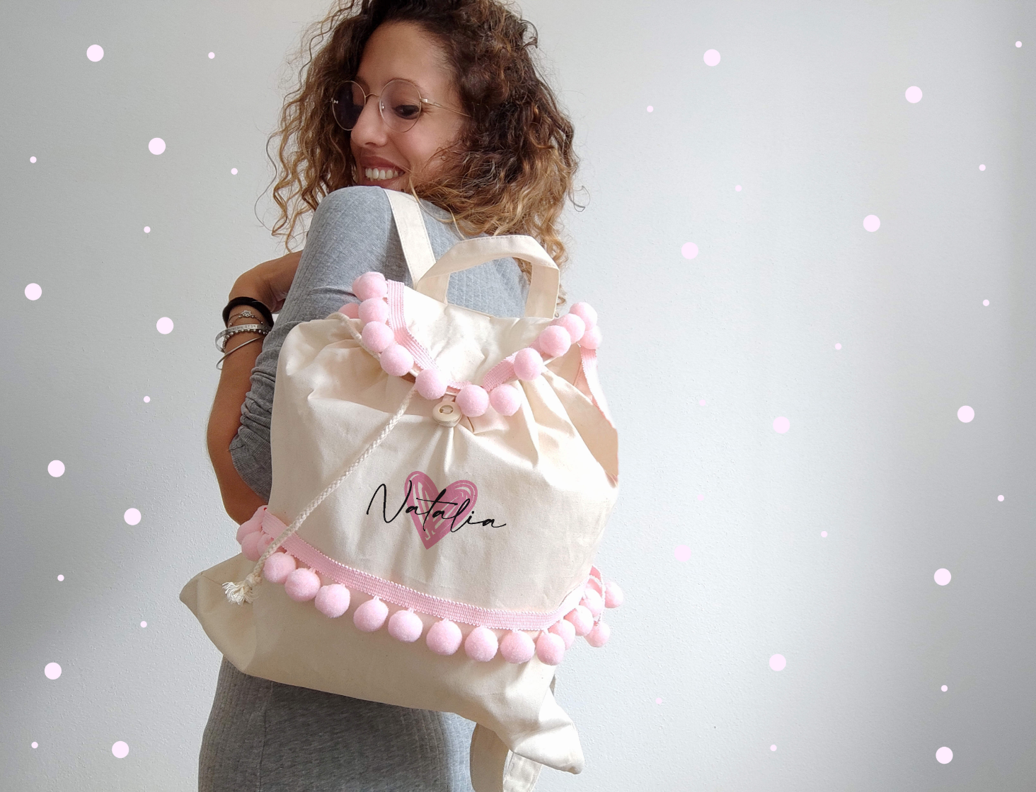 Simpatico e colorato zainetto Pom pom da poter personalizzare con il tuo nome o con la tua frase preferita!